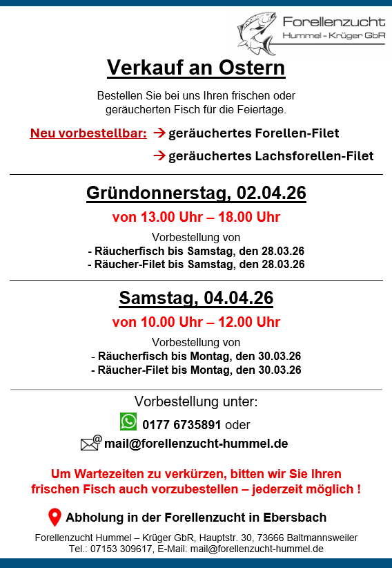 Vorbestellung unter 01776735891 oder mail@forellenzucht-hummel.de